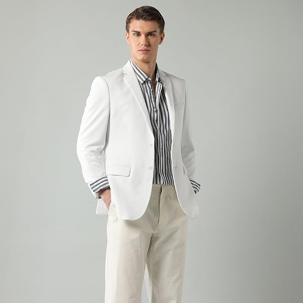 Sleeve Length ; Long SleevesFit ; Slim FitType ; JacketsPrint or Pattern Type ; SolidOccasion ; FormalLength ; RegularHemline ;CurvedPlacket ; Button PlacketColour ; White